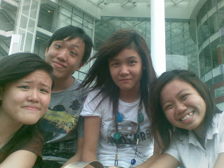 Went to eat the noodles and we were actually laughing all the way, haa! Walk to clark quay and had ice cream at a shop and we saw Felicia Chin, she was damn beautiful! We ordered a melon ice-cream and shared it. While eating Derek took out his notebook and we three girls start drawing on it! Poor Derek! Went out the the open space and we start taking lots and lots of pictures [as shown in the previous post] and went off after that.
